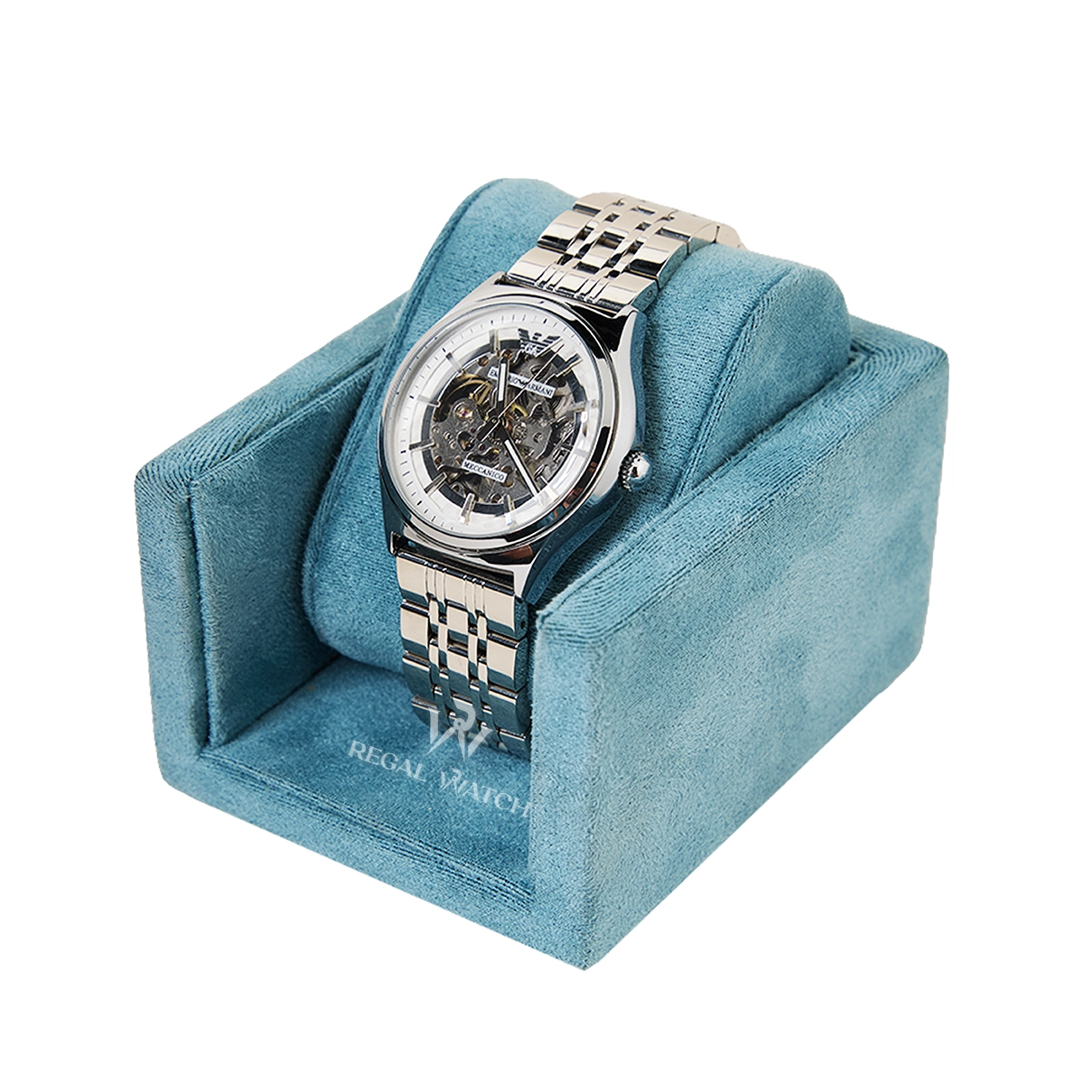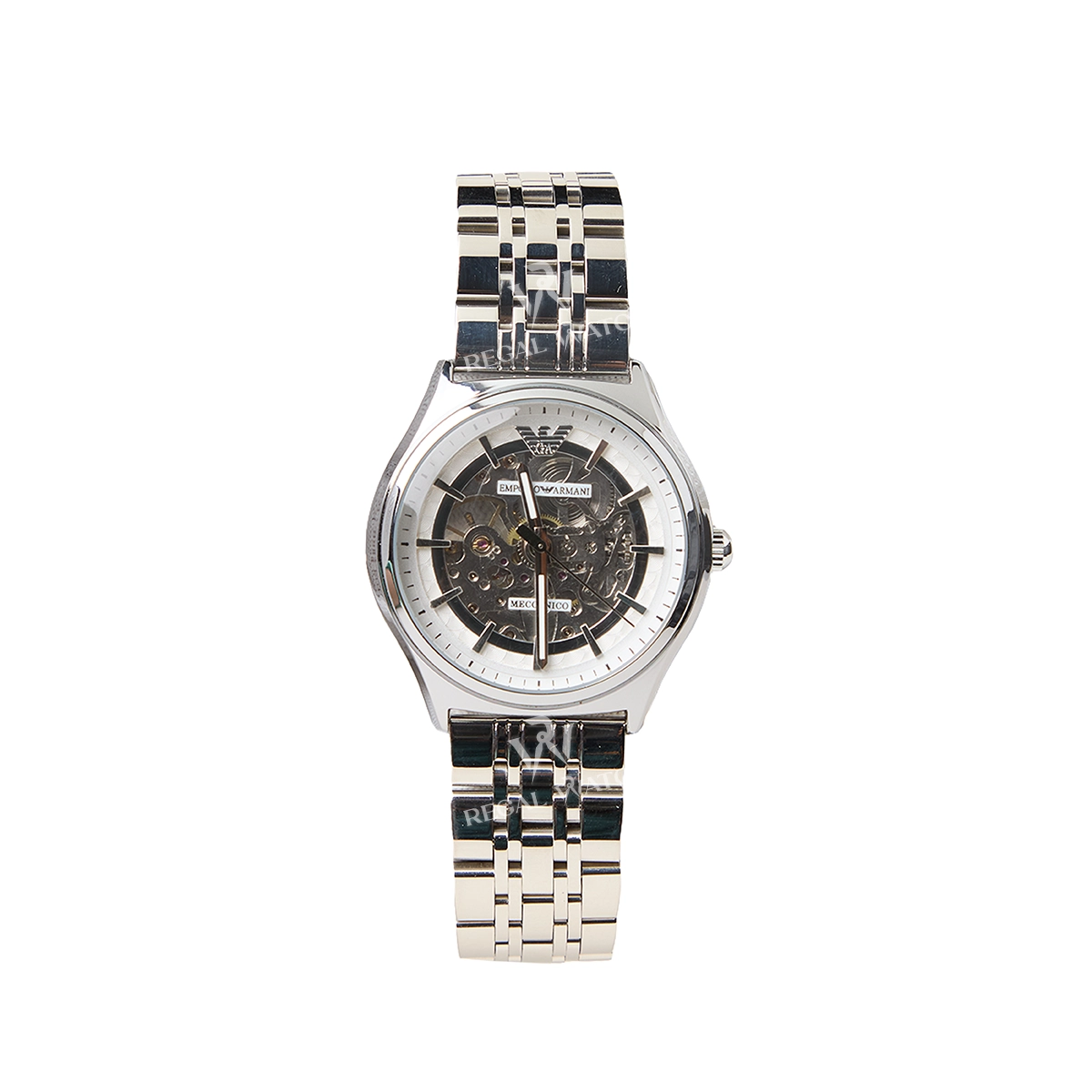 With its clean skeleton design and silver finish, this watch delivers the elegance and confidence of a high-end mechanical piece at a more accessible price.