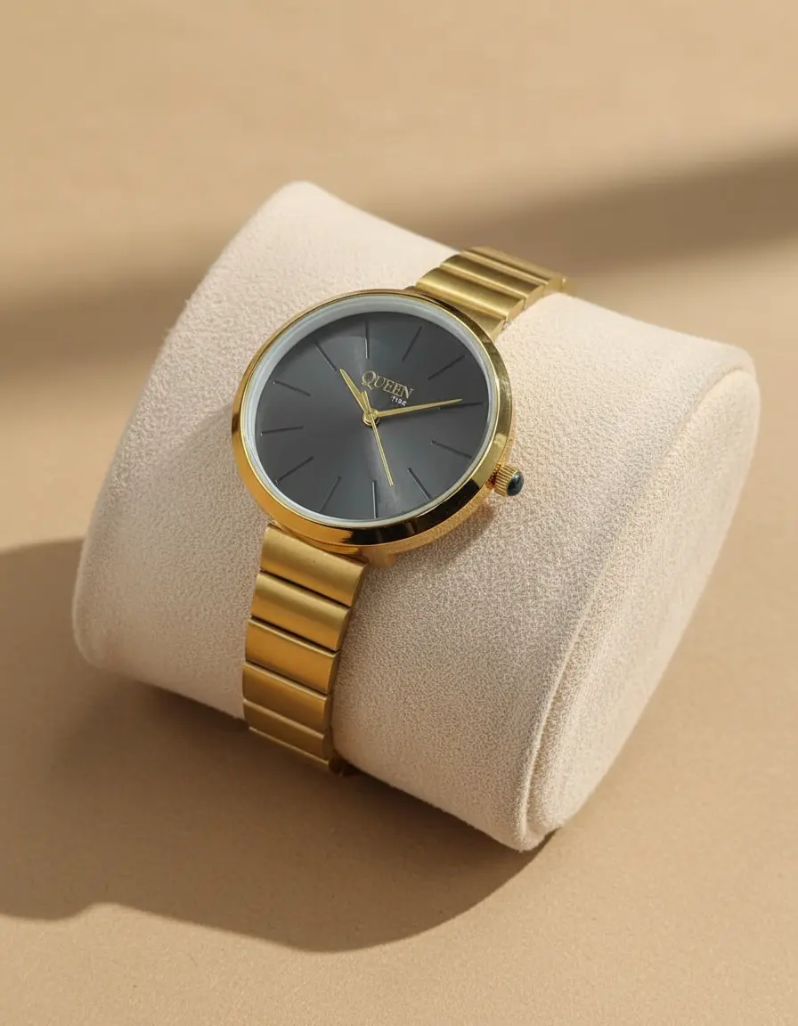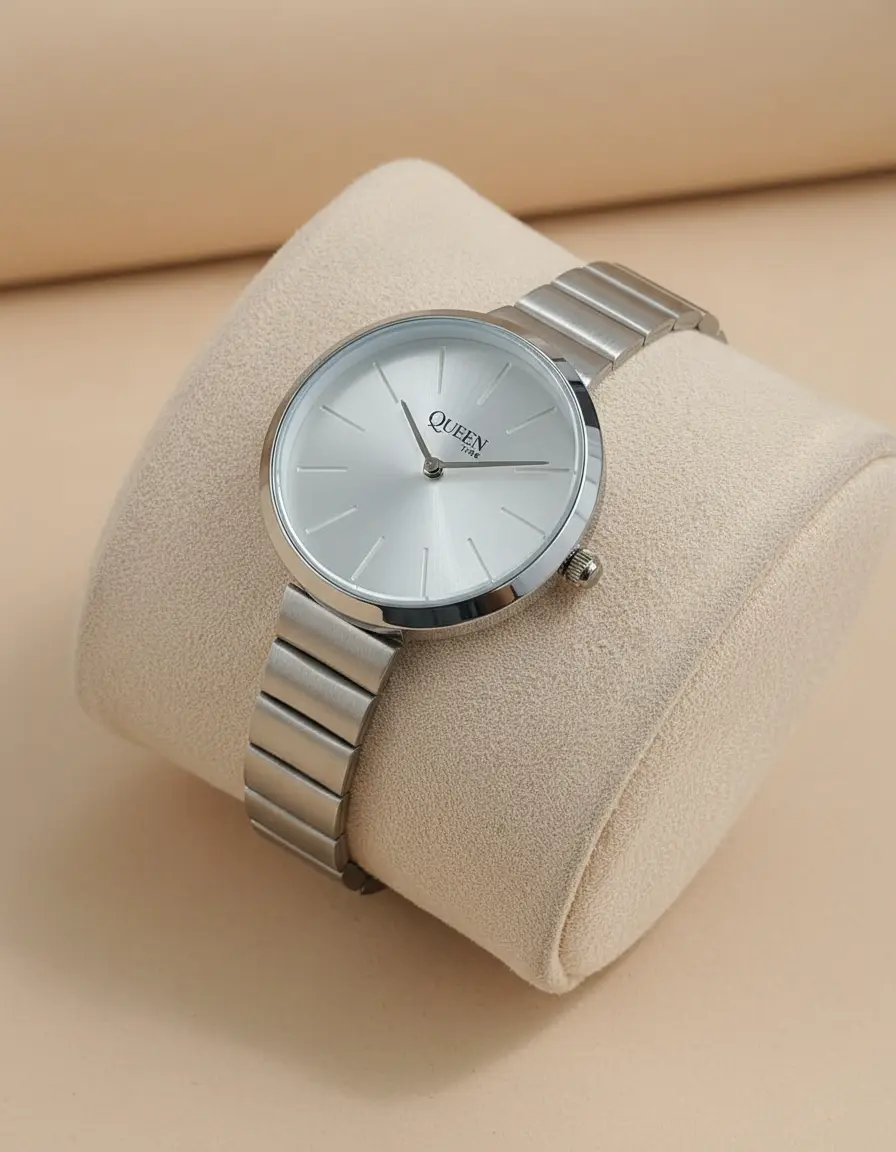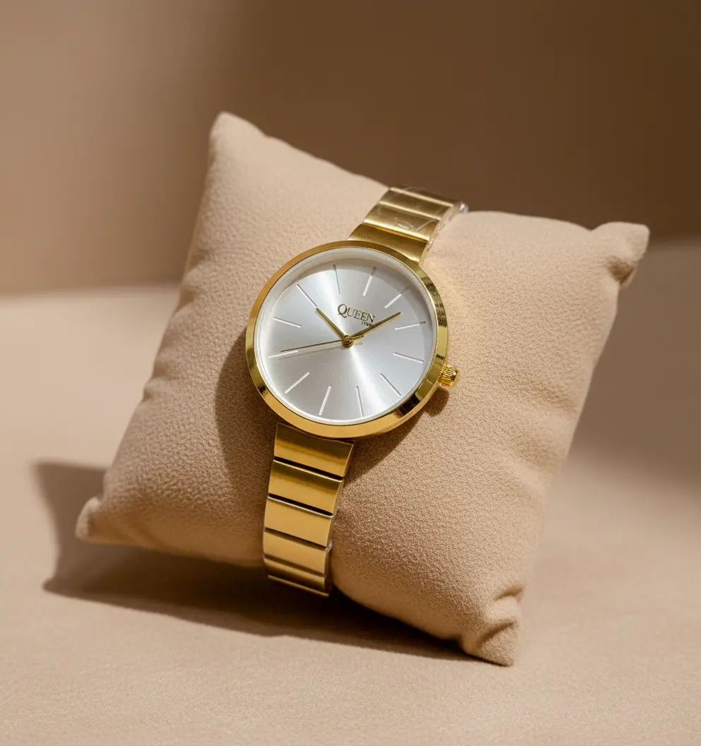 Queen Time Classic Ladies Watch is designed for women who prefer a clean, elegant look for everyday wear. Its slim, round dial and polished finish make it suitable for office use, casual outings, and special occasions.