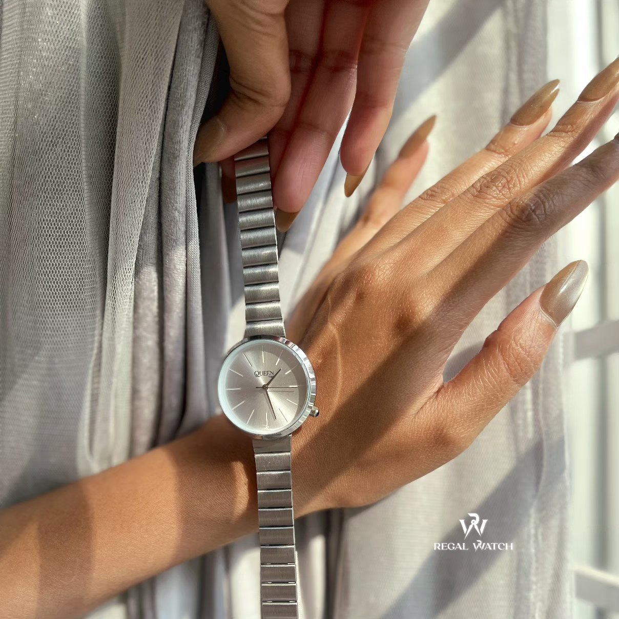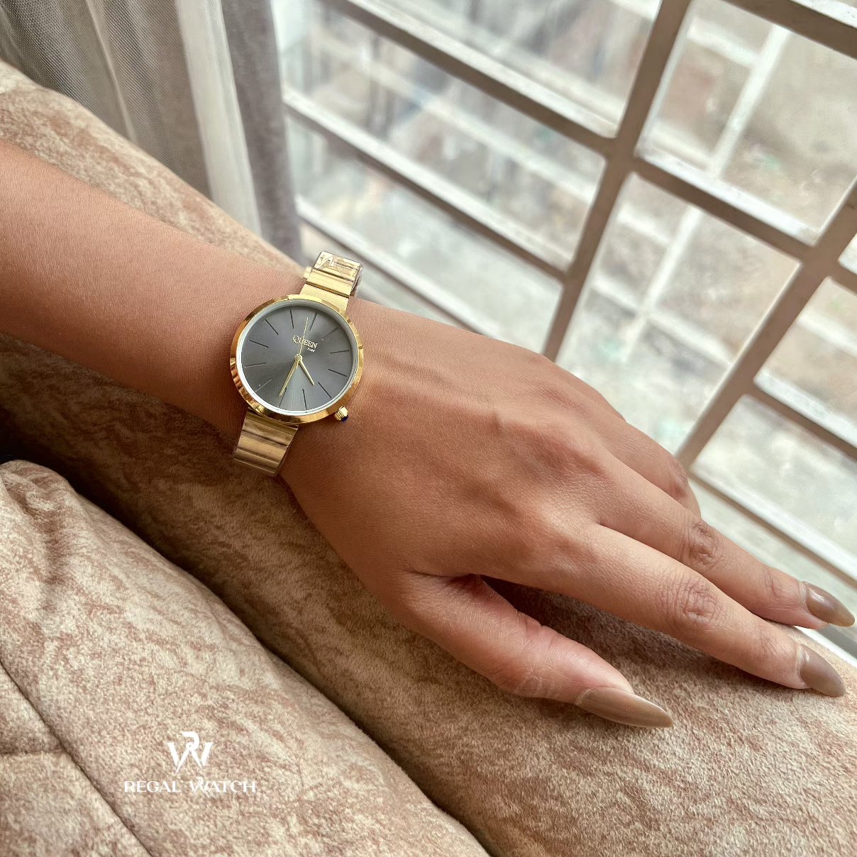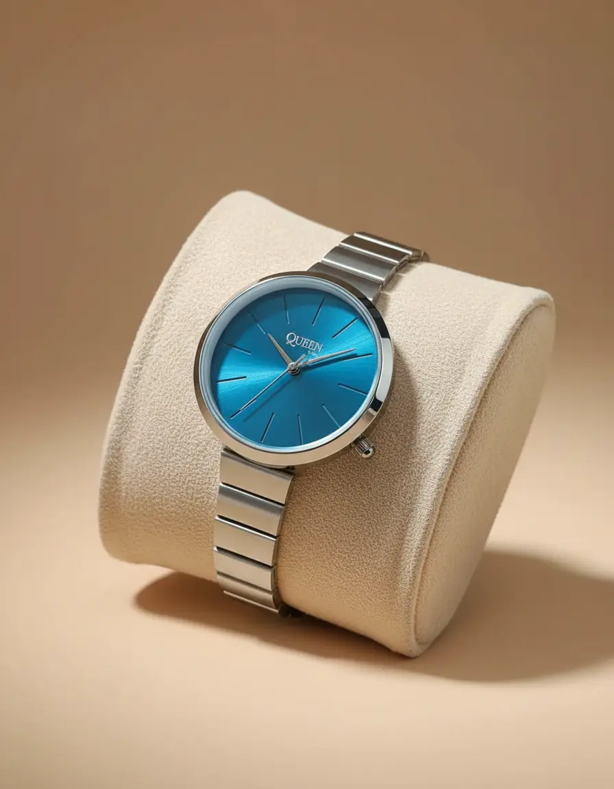 Queen Time Classic Ladies Watch is designed for women who prefer a clean, elegant look for everyday wear. Its slim, round dial and polished finish make it suitable for office use, casual outings, and special occasions.