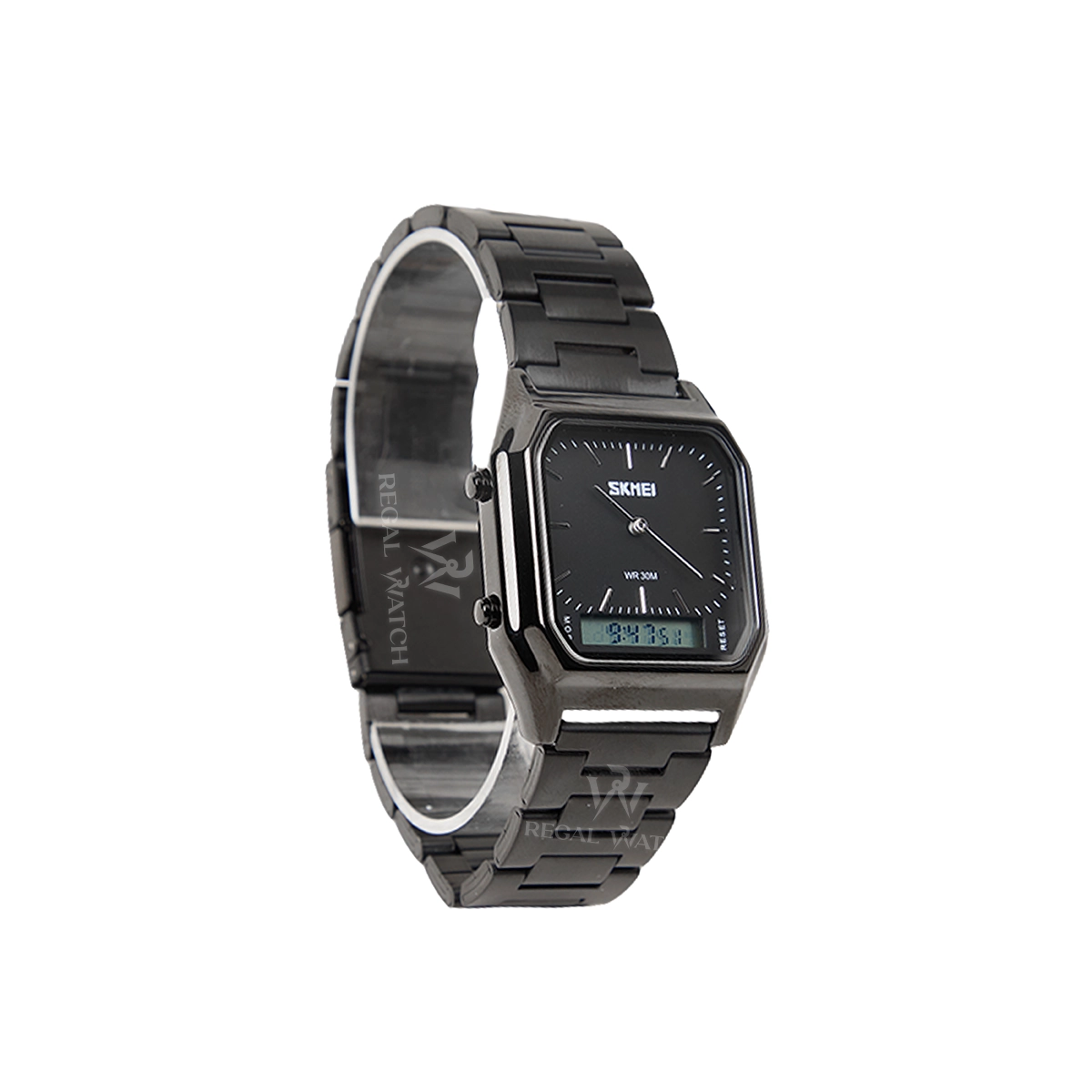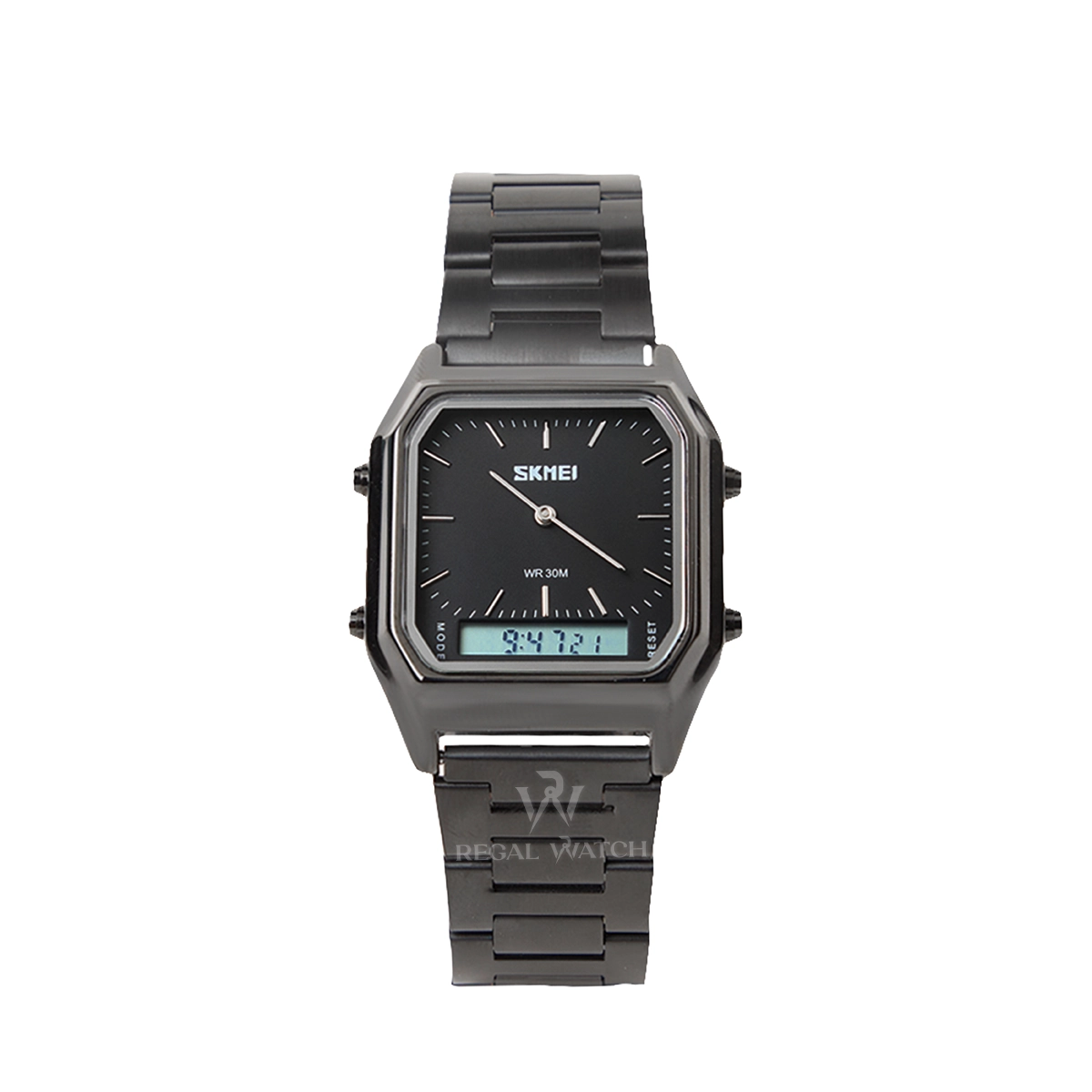 The SKMEI 1220 delivers a sporty, modern look with the utility of both analog and digital timekeeping. The square alloy case and stainless steel strap give the watch a bold presence, while the dual display keeps every feature easy to access.